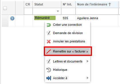 Nadat er een herziening is uitgevoerd op een eerste loon wordt er meestal een creditnota of een bijkomende factuur naar de klant gestuurd. Indien de klant vraagt om toch een volledig nieuwe factuur op te sturen met alleen de nieuwe situatie van de lonen, moet men in de prestatie-ingave deze klant 'terug op te factureren' zetten.