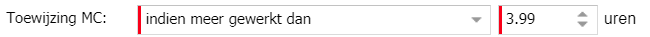 'Indien meer gewerkt dan' | Deze optie wordt het vaakst gebruikt. Ze bekijkt alleen per dag het aantal uren die er gewerkt worden en begint pas een MC toe te kennen zodra het aantal uren dat ingegeven is in het profiel overschreden wordt. Voorbeeld: In dit voorbeeld wordt er pas een MC toegekend zodra een UZK 4u gewerkt heeft op een dag. Het maakt dus niet uit of een UZK 4u of 10u gewerkt heeft op een dag. |