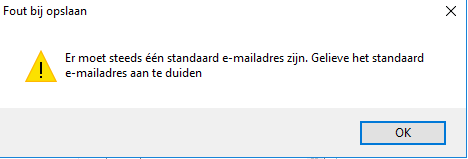 Bij de ingave van een e-mailadres of gsm nummer, is het de bedoeling dat één adres of nummer wordt aangeduid als 'Standaard' zodat het systeem weet welk e-mailadres of gsm nummer het mag gebruiken bij de mail- of sms module.