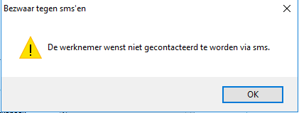 Comfrom de GDPR richtlijnen, kan de werknemer aangeven dat hij/zij niet 'onnodig' gecontacteerd wenst te worden via SMS.