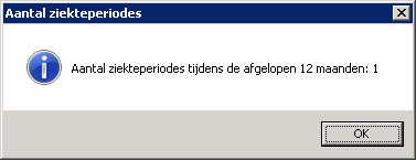 Wanneer er via de werknemersfiche een ziekteperiode wordt ingegeven, krijg je bij het opslaan van de fiche een melding. Hierin wordt getoond de hoeveelste ziekteperiode dit is sinds de afgelopen 12 maanden.