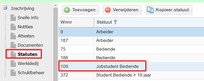 Vervolgens moet er een studentenstatuut in de personenfiche geactiveerd worden. Voor studenten bestaan er verschillende statuten. Klik HIER om alle mogelijke studentenstatuten te raadplegen.