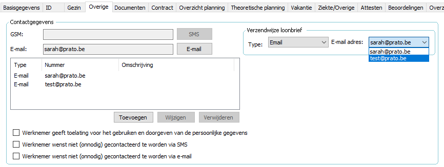 De ‘oude’ aanduiding is niet meer beschikbaar in de fiche. Indien u reeds e-mail adressen had aangeduid, die dienden gebruikt te worden als e-mail adres voor de loonbrief, dan zorgen wij voor u voor de nodige conversie naar de nieuwe werkwijze. U hoeft hiervoor zelf niets te ondernemen.
